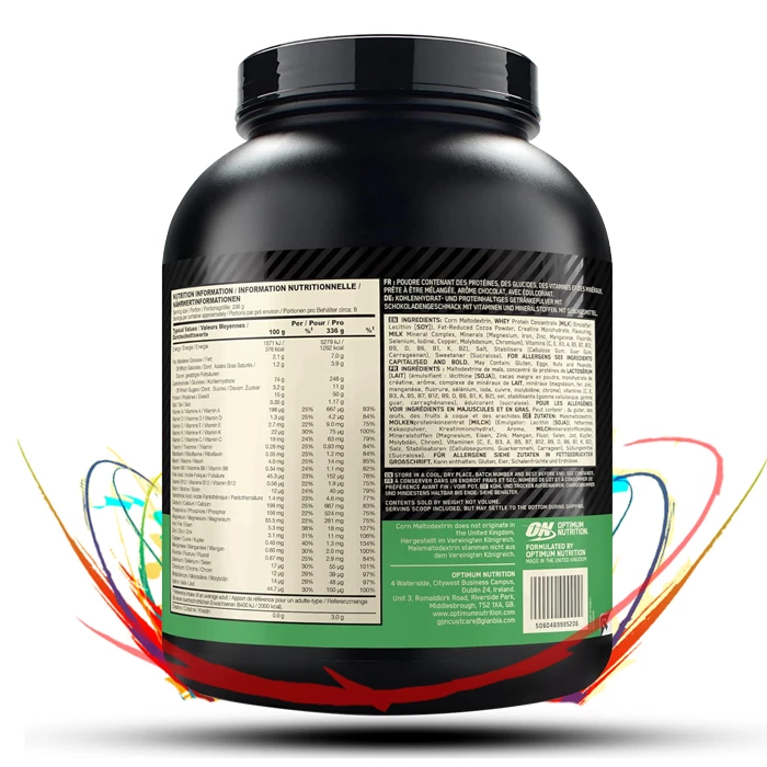 It may be thought that a high-carbohydrate diet causes weight gain; however, if carbohydrates are aligned with appropriate exercise activities, they can promote muscle building and fitness. To gain muscle, athletes need calories and energy, and these calories are provided by a nutrient intake of carbohydrates. The lack of Optimum Nutrition Serious Mass means that athletes do not have the strength, power, and energy to perform sports activities, resulting in premature fatigue. Given the intensity of exercise, an athlete's body needs about 30 to 60 grams of carbohydrates per hour of activity. The 252 grams of carbohydrates per serving of this supplement can enhance the muscle mass process and prevent tissue and muscle mass atrophy after exercise.